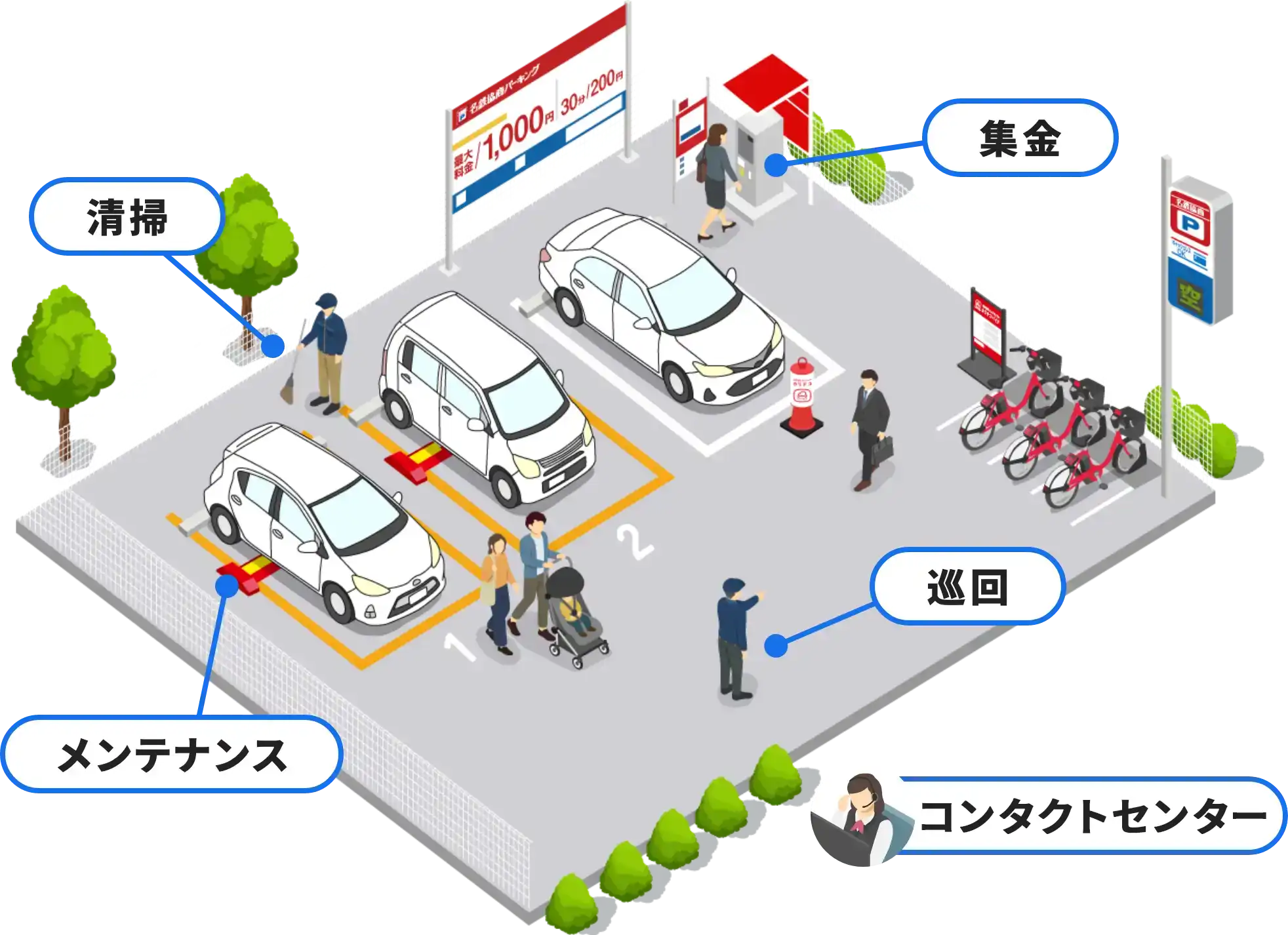 土地の整備駐車場機器の設置管理運営まで一括対応。